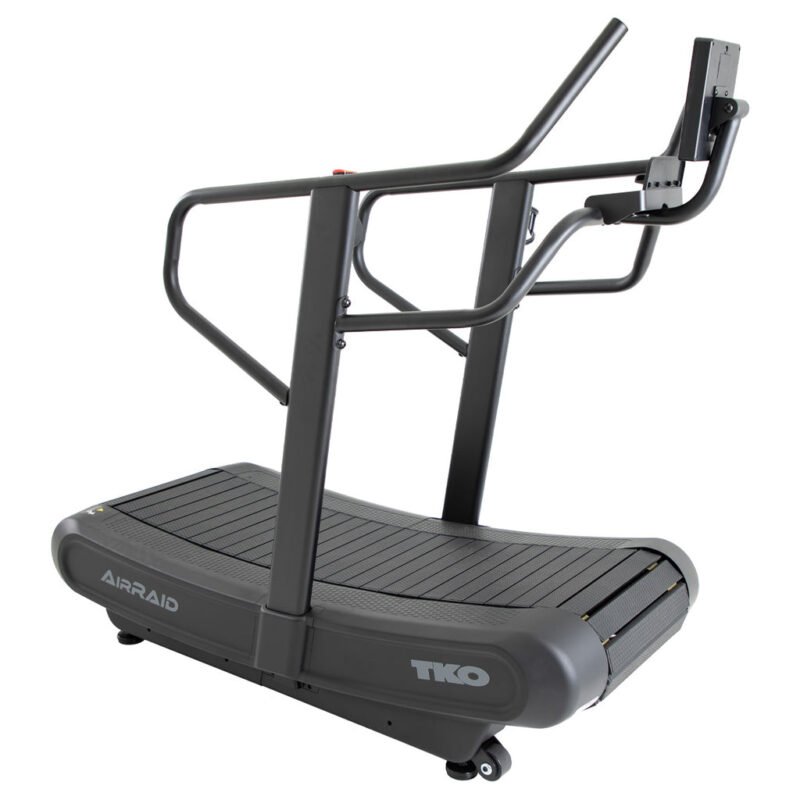 TKO AirRaid Runner offers the benefits of a self powered treadmill as well as the option of 4 levels of resistance for higher intensity interval training. The belt give a impact reducing molded slats on sealed bearings for a smooth and quiet movement. Perfectly placed handrails for causal walking or intense push sled simulation.. The console is equipped with interval training programs that are perfect for crossfit and HIIT.